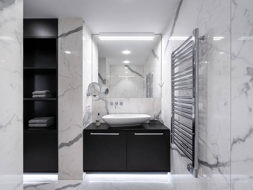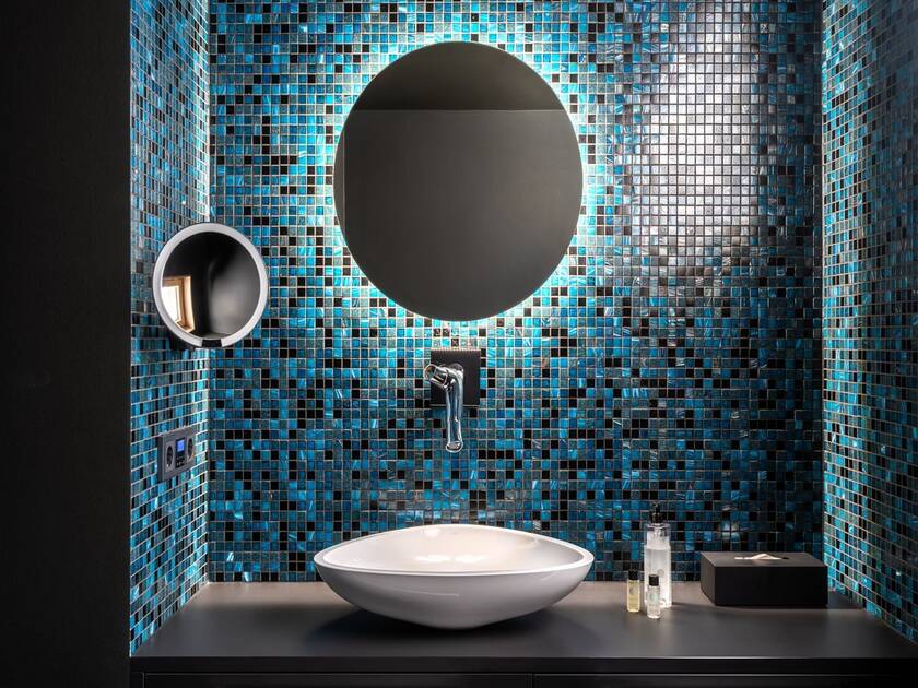 Crafting an individual atmosphere for every suite was worthwhile: each décor provides guests the choice to arrange their stay according to individual taste. This is abundantly clear in the bathrooms, which reflect the suites through the material palette, color scheme and selection of AXOR faucets and showers.
